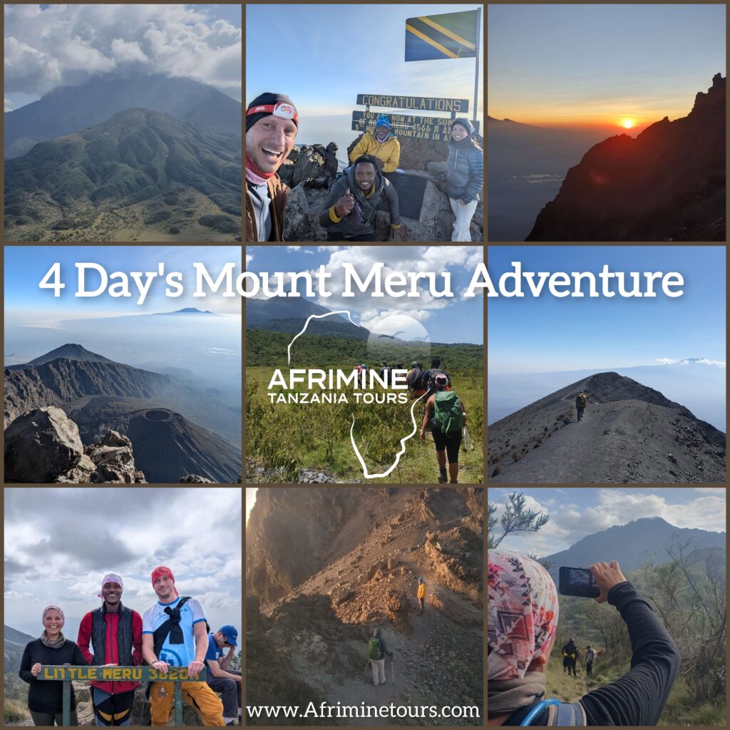 The 4 Days Mount Meru Climbing Adventure offers one of the best trekking experiences in Tanzania. Mount Meru (4,566m), located in Arusha National Park, combines dramatic landscapes, rich wildlife, and challenging trails, making it an ideal acclimatization climb before Mount Kilimanjaro.